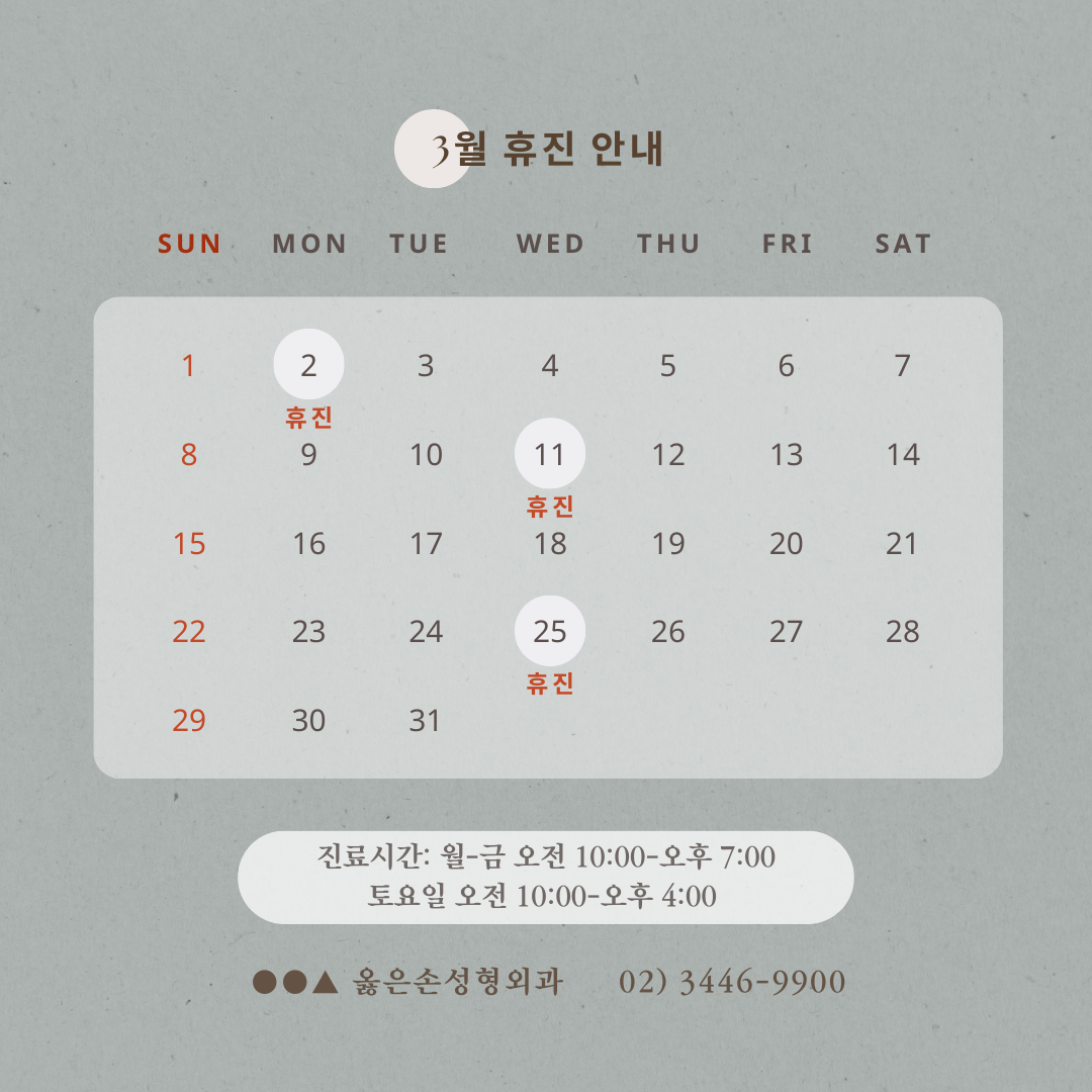 옳은손 이야기 사람과 사람, 성형외과의 옳은 기준이 됩니다. 자세히보기 Before & After 인생의 변화, 옳은손에서 시작됩니다. 자세히보기 공지사항 Before & After 사진 열람 안내 2023-05-11 비급여 수가표 2017-08-16 [오픈공지] 정직하고 섬세한 옳은손입니다 2017-02-13